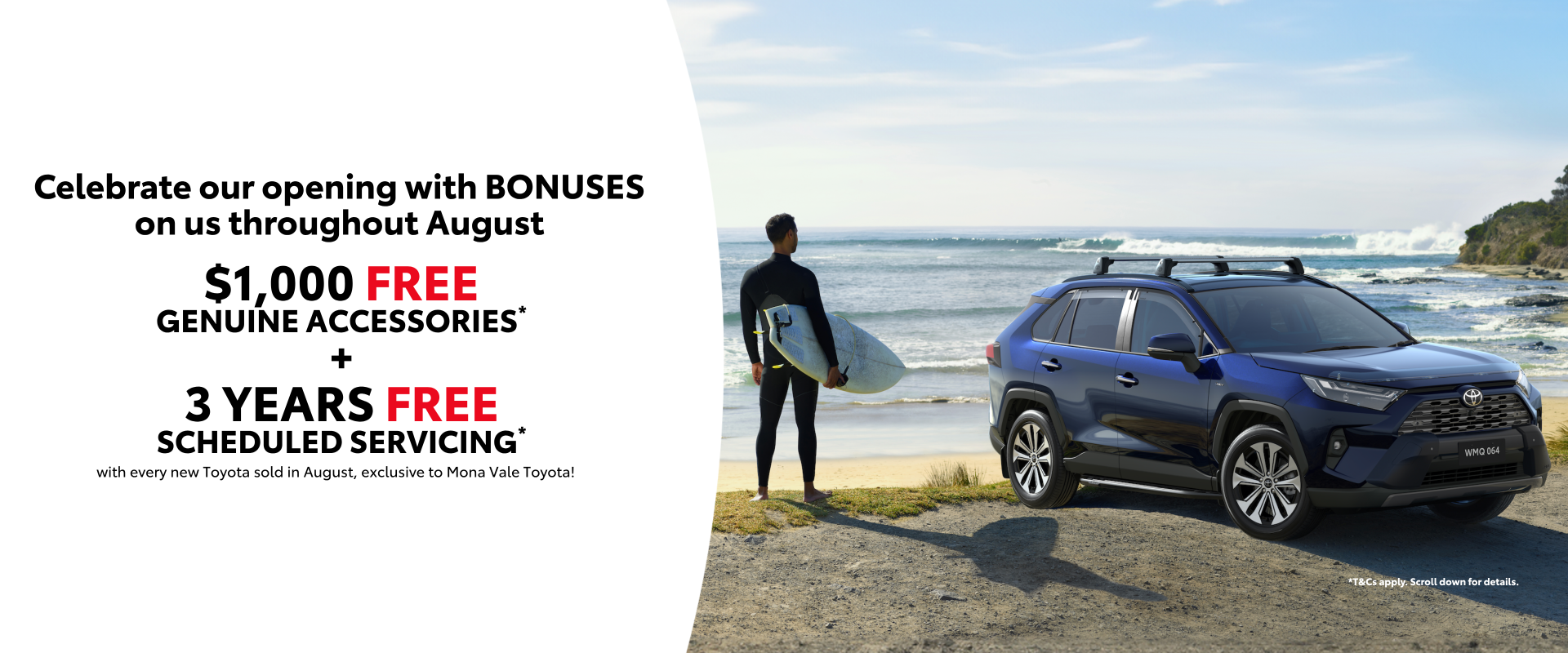 Mona Vale Toyota is officially open & we’re celebrating with exclusive BONUS offers all August long!