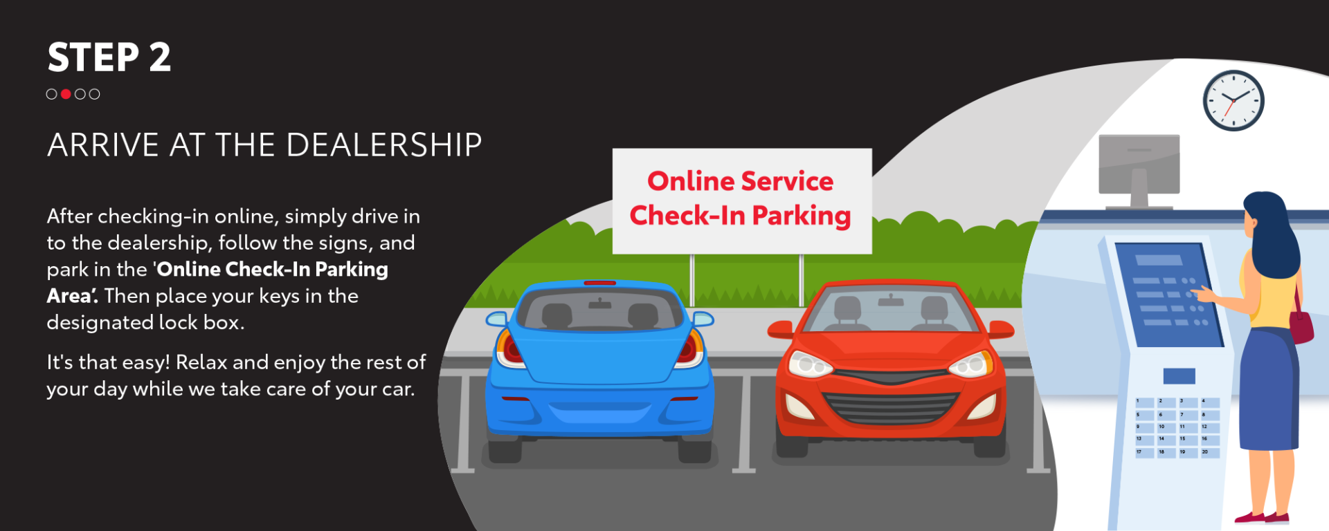 Skip the queue with our Self-Service Kiosk, a completely contact-free way to drop off and collect your Toyota for its next scheduled service.